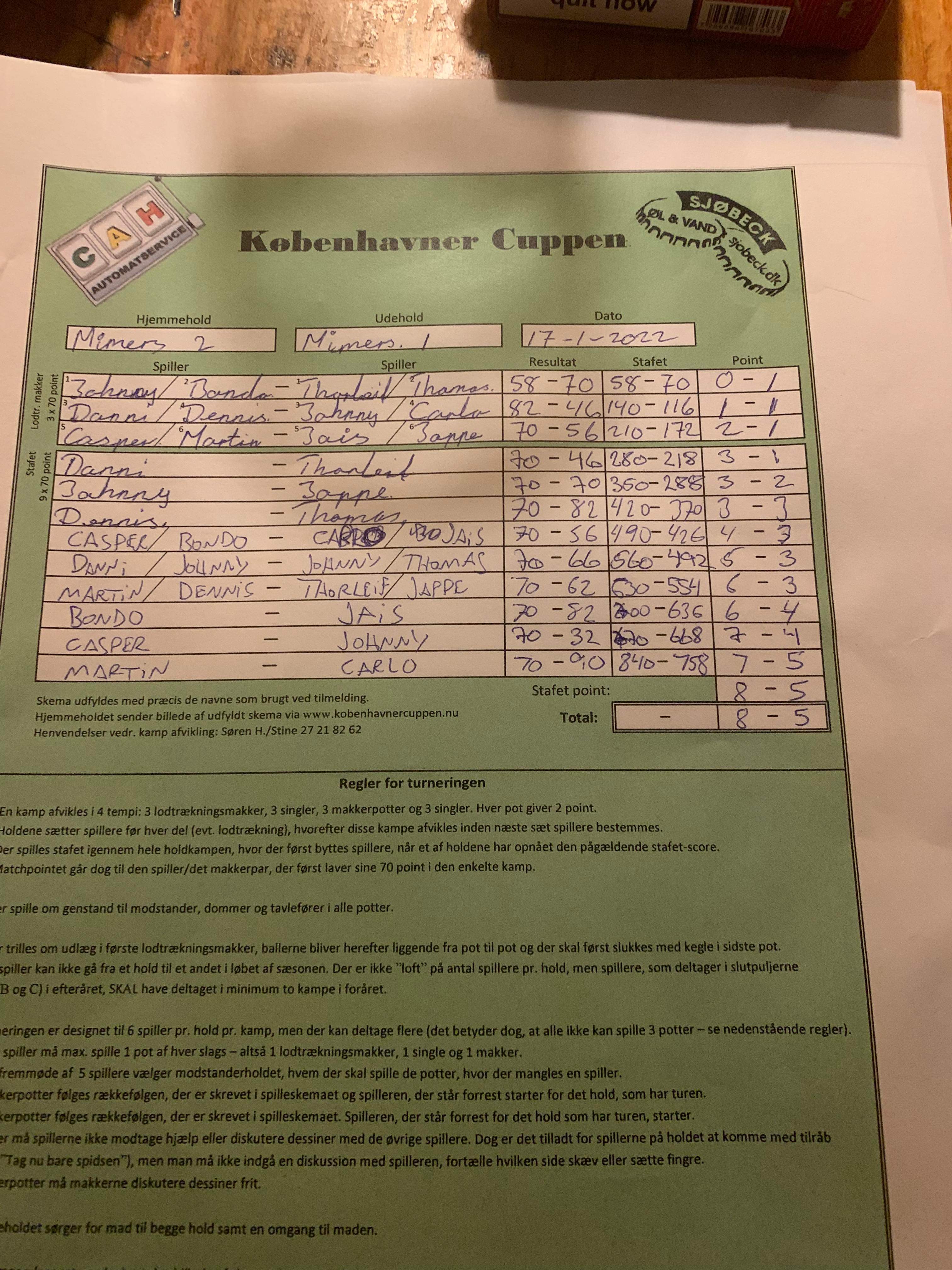 | 17/01 2022 | 18:00 | Københavner Cuppen | pulje 2 2022 |