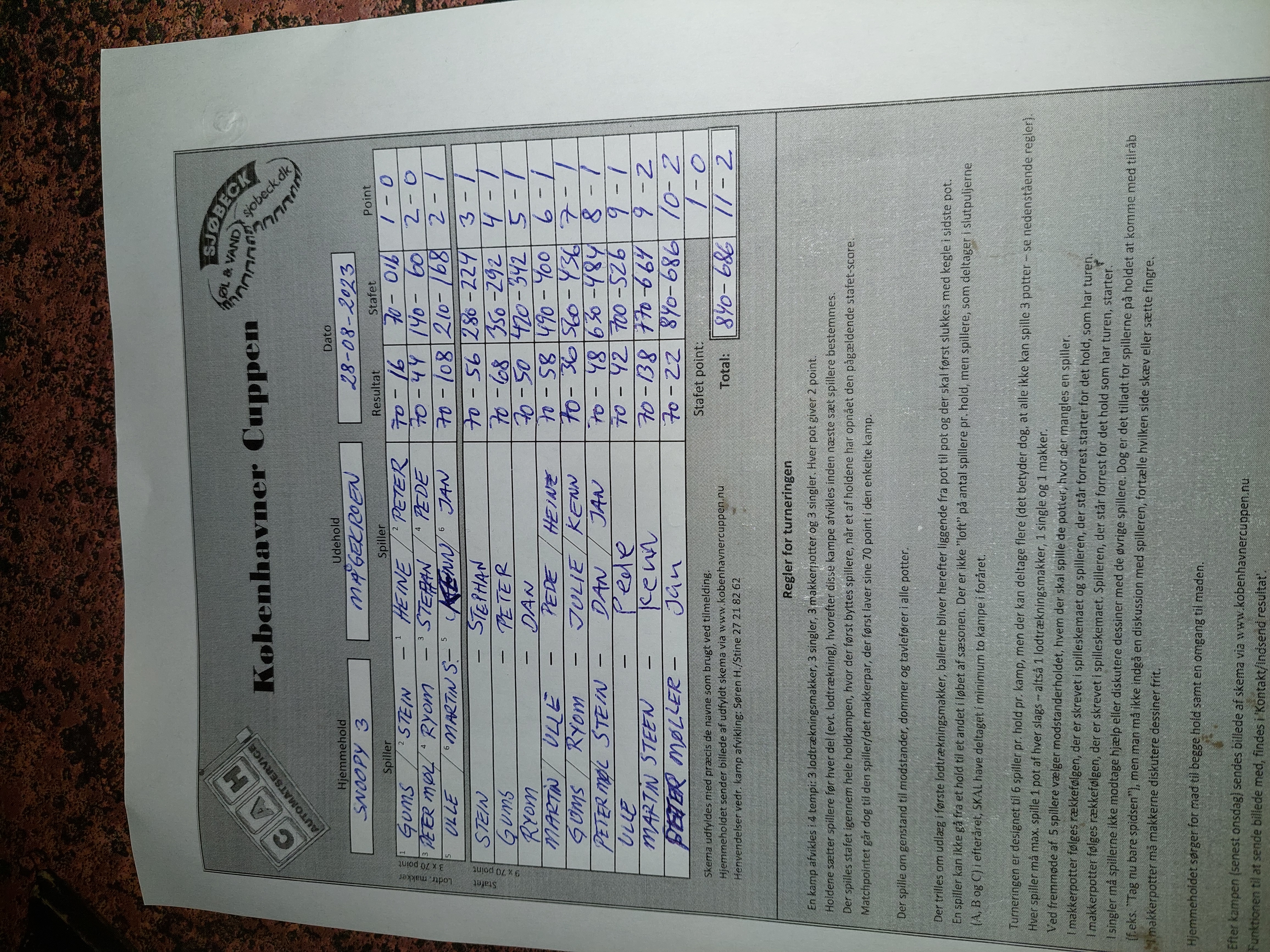 | Hold | Stafet | Point |