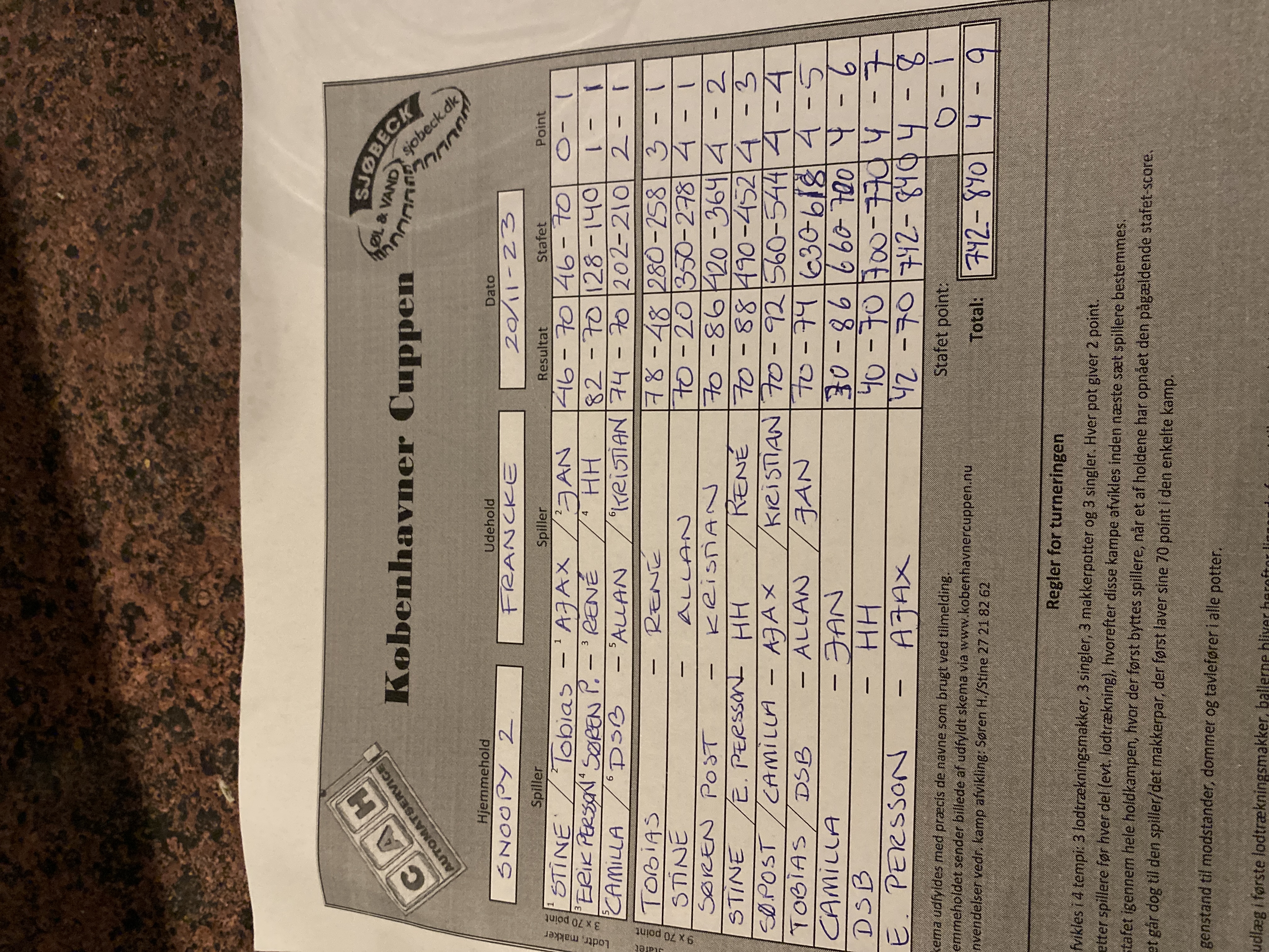 | 20/11 2023 | 18:00 | Københavner Cuppen | pulje C 2023 |