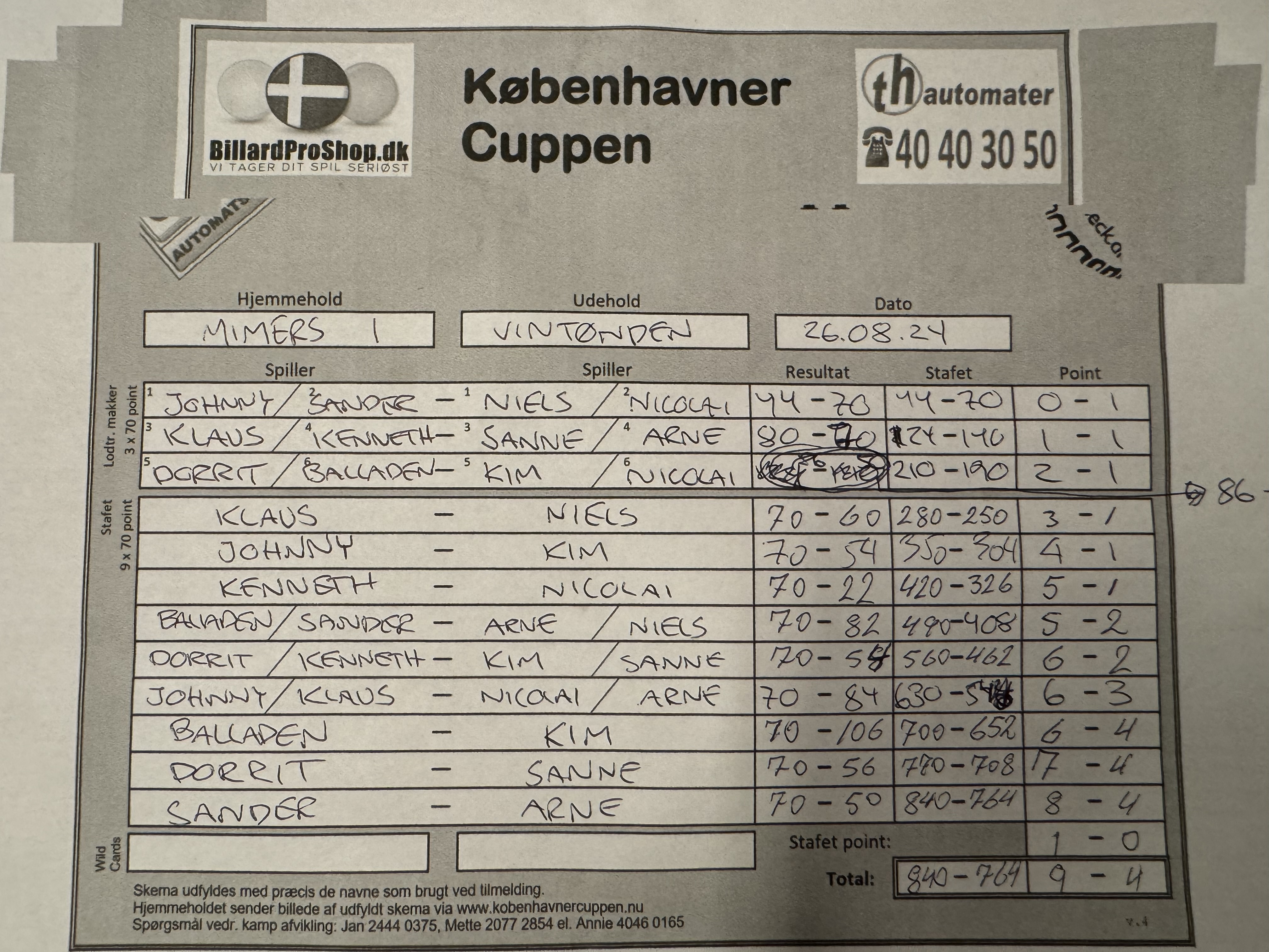 26/08 2024 18:00 Københavner Cuppen pulje C 2024