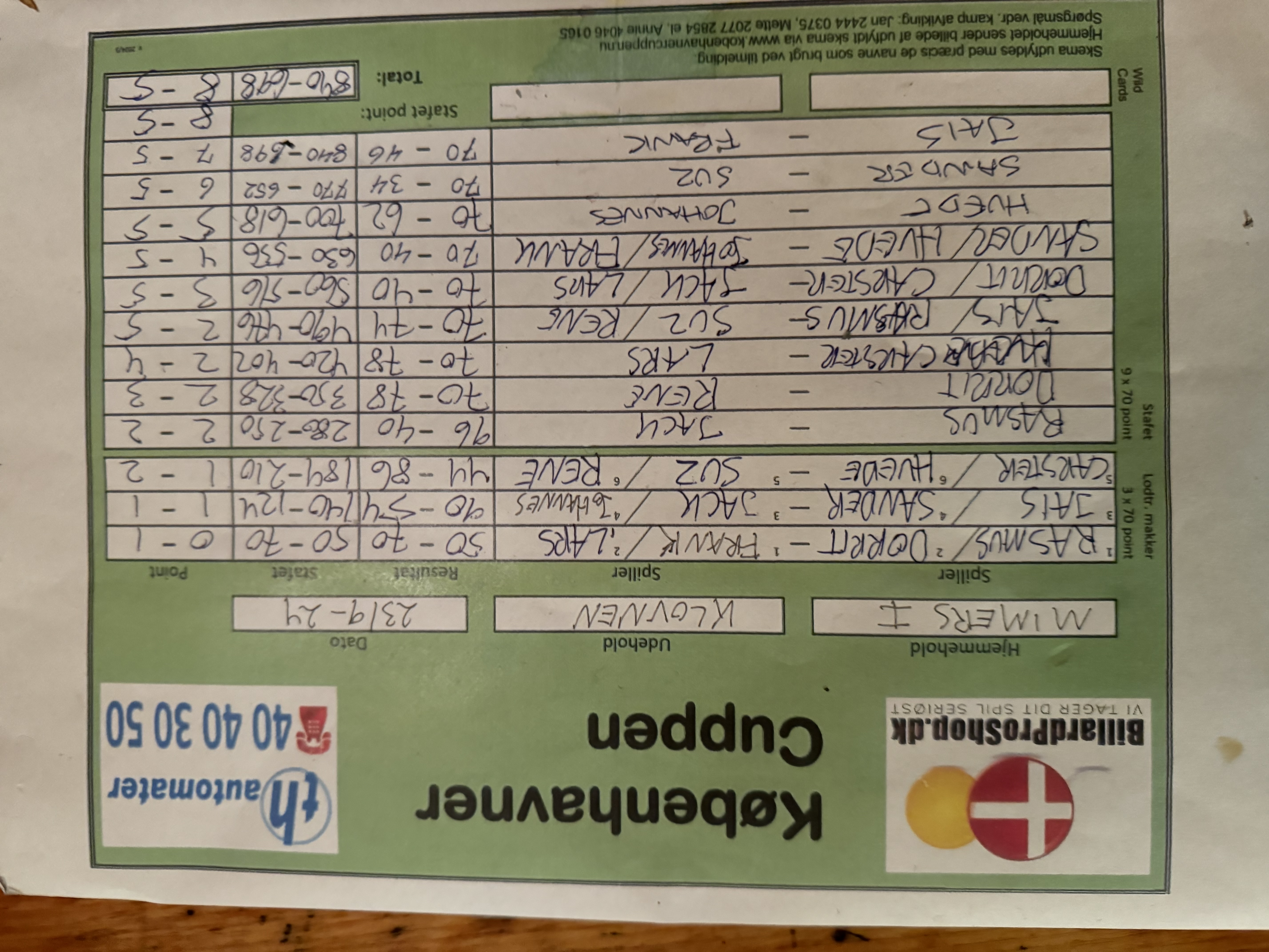 | 23/09 2024 | 18:00 | Københavner Cuppen | pulje C 2024 |