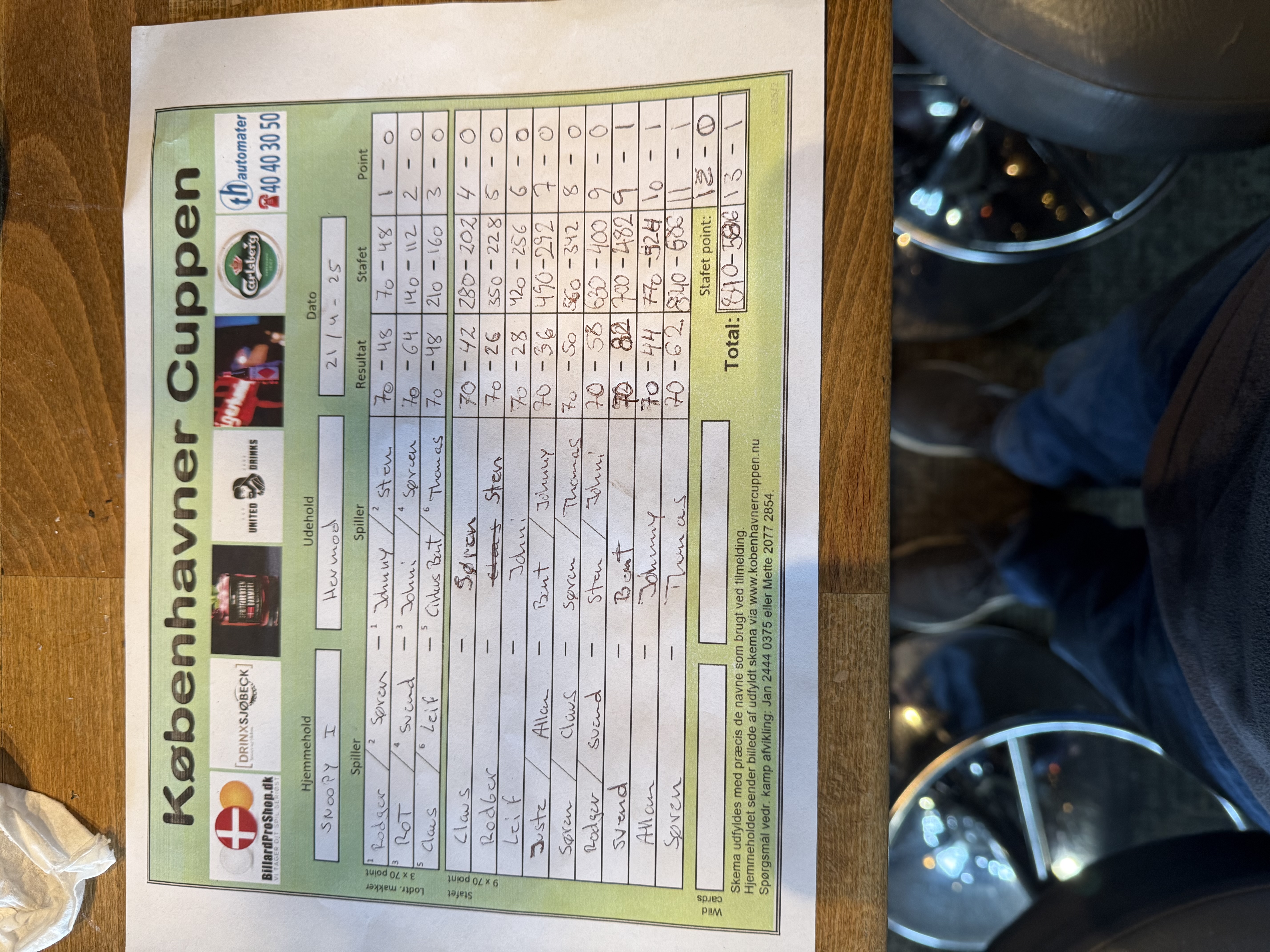 | Hold | Stafet | Point |