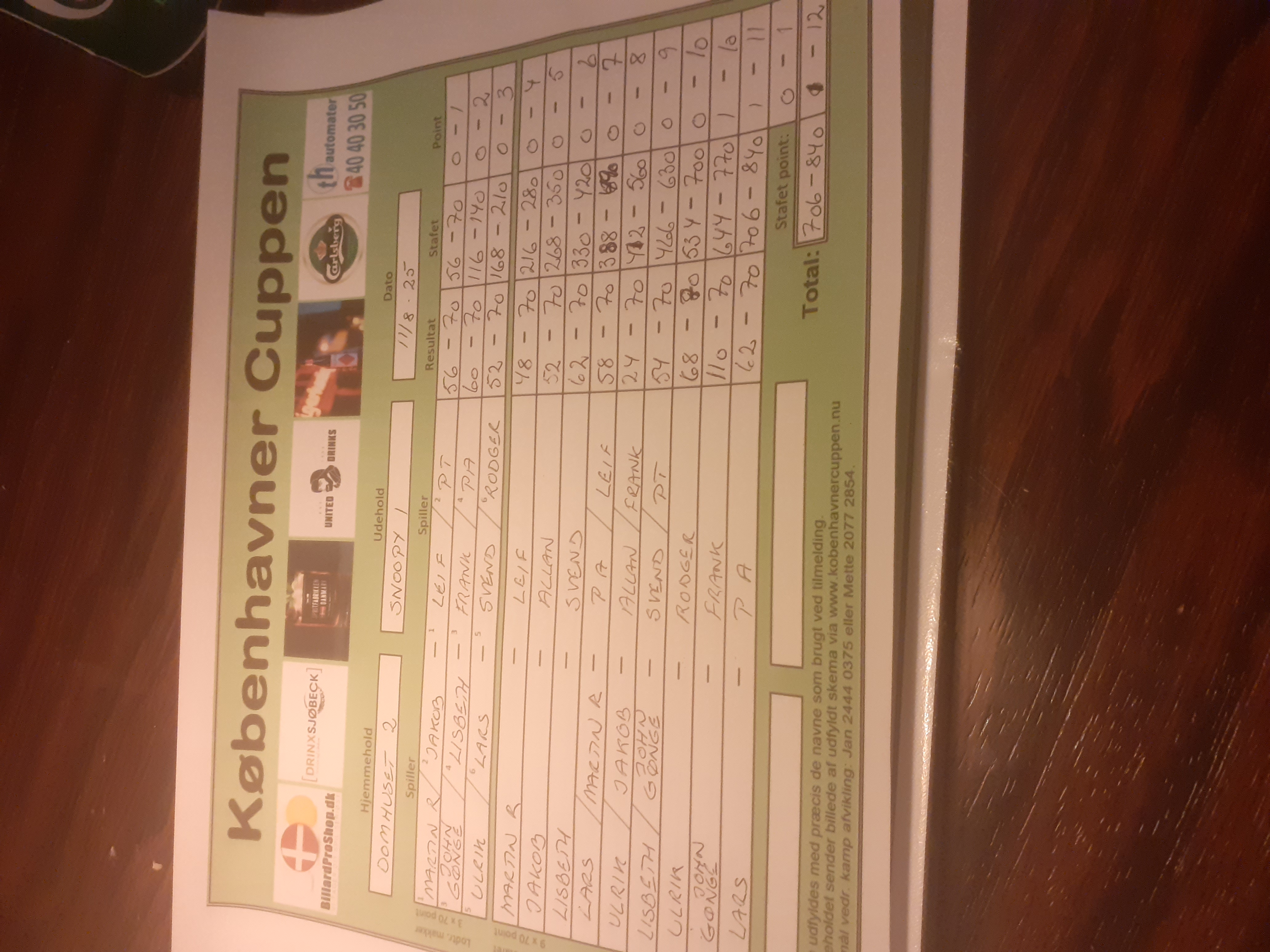 | Hold | Stafet | Point |