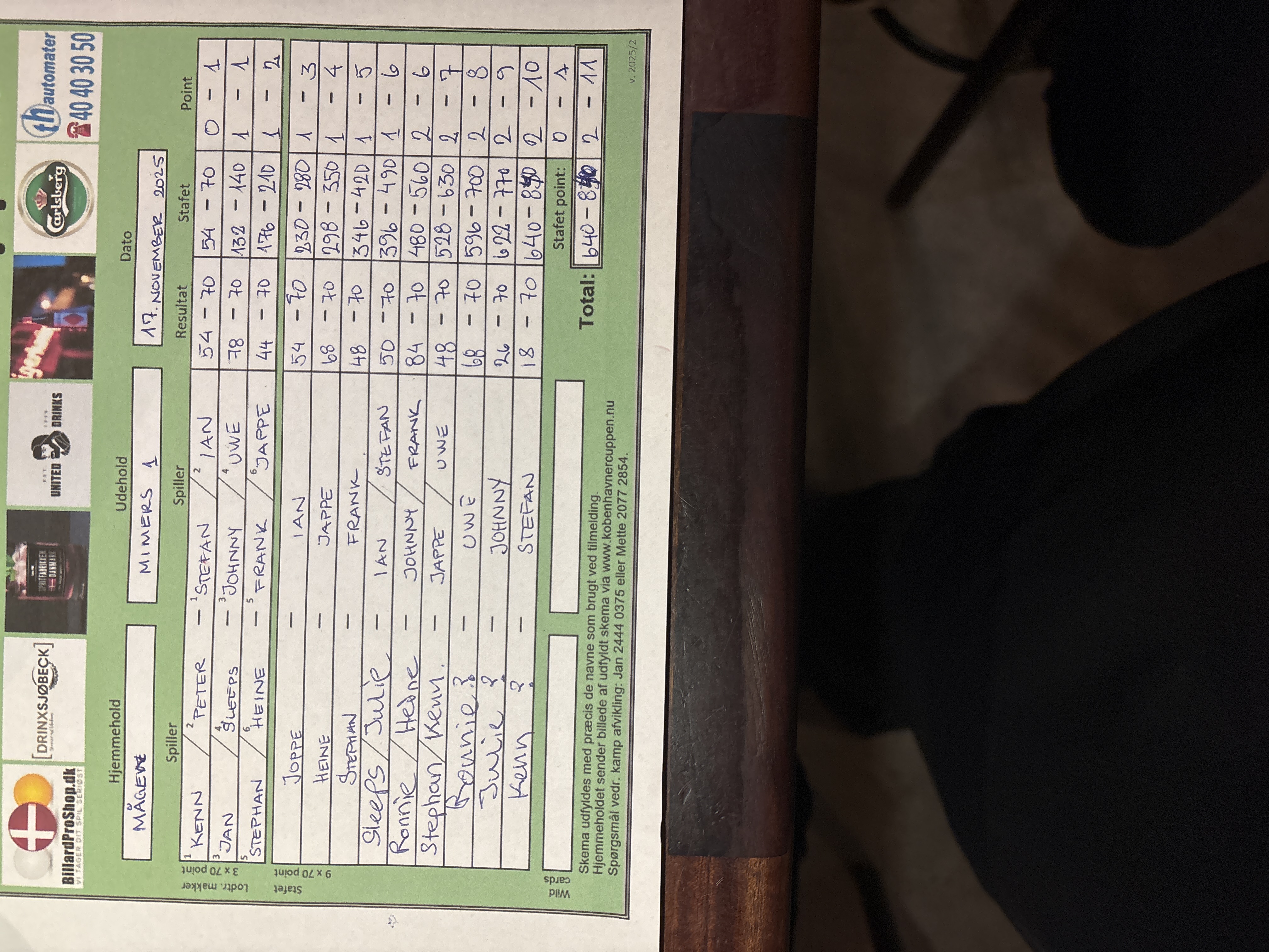 | Hold | Stafet | Point |
