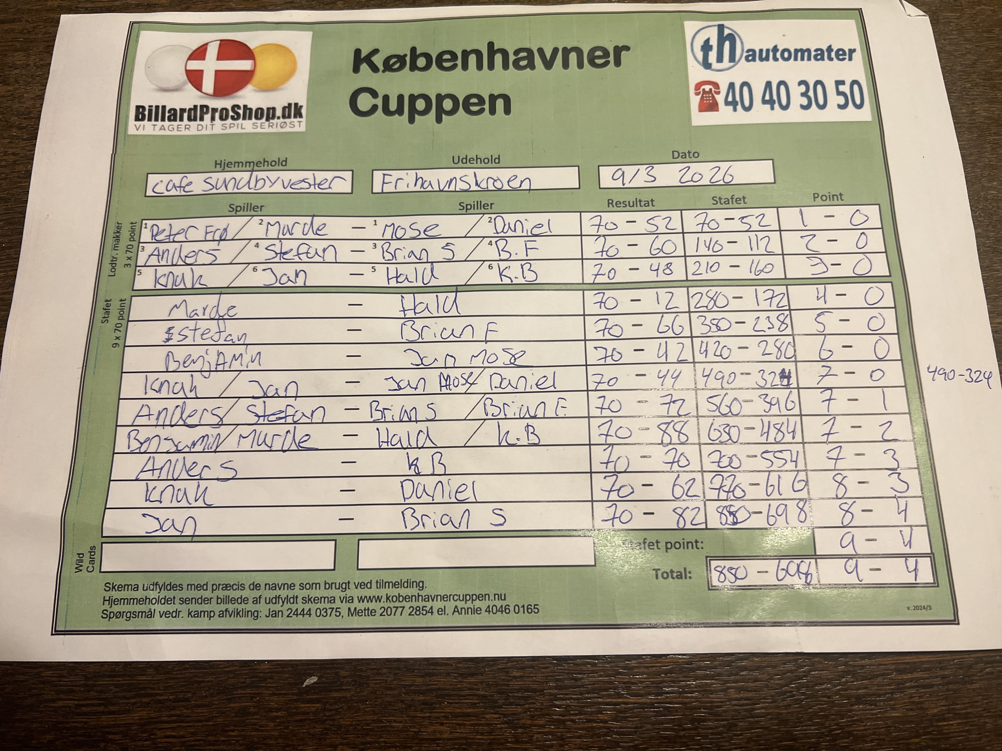 | 09/03 2026 | 18:00 | Københavner Cuppen | pulje 2 2026 |
